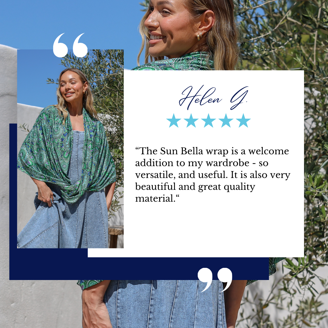 "I love my Sun Bella Wrap! I’ve had a melanoma so am ultra cautious when out in the sun and the Sun Bella Wrap makes it easy to stay sun safe." Andrea G. from NSW